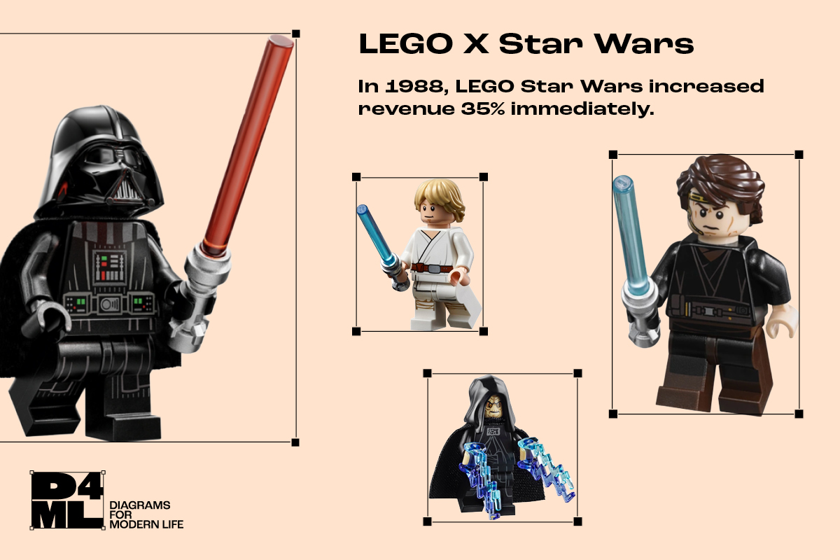 LEGO is the textbook case. In 1998, facing declining sales and mass layoffs, LucasFilm came knocking about Star Wars. One board member reportedly said: 'Over my dead body will you be launching LEGO Star Wars in Europe.'
