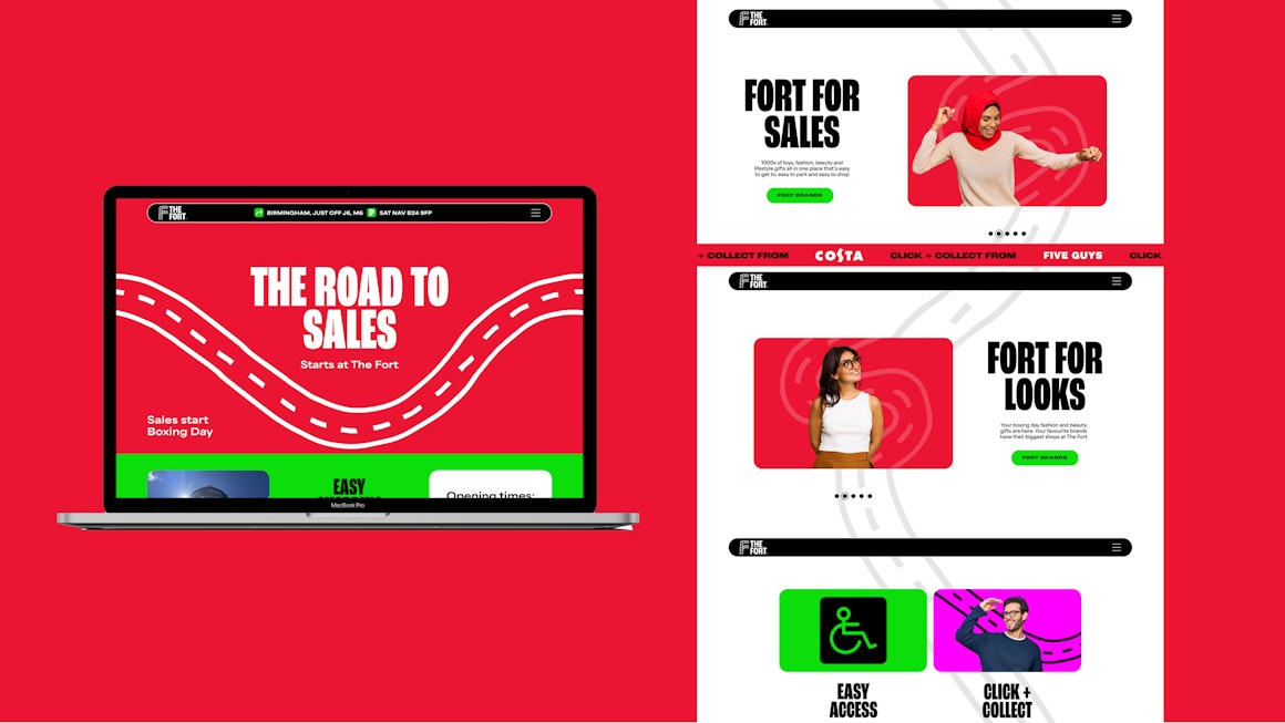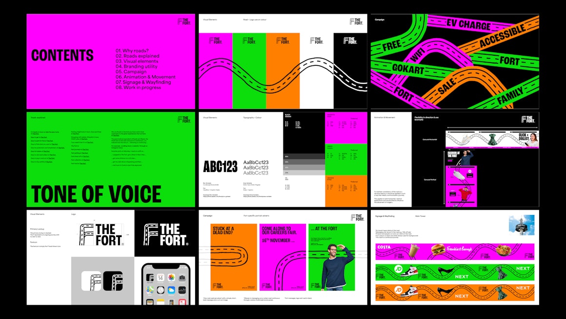 The new brand recognises The Fort’s heritage and accessibility. ‘All roads lead to The Fort’ literally guides visitors to its fashion, food and lifestyle brands and underlines how easy it is for people to get to and park at the site. Excellent accessibility for young families and people with mobility issues is a key feature of The Fort, as are the solar panels providing the energy for the shops and visitors' EVs.